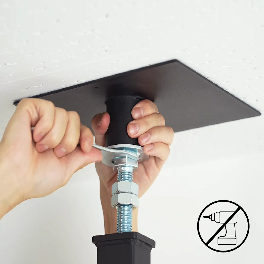 本製品は床と天井を突っ張る形で固定をします。接地面(床板と天板)に緩衝材を貼付しておりますが、お客様のご使用状況や使用環境によっては床や天井に損傷を与える可能性がございます。